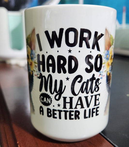 Work Hard For My Cats Large 15oz Sublimated Mug